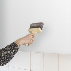 A l’aide d’une brosse à encoller, étalez directement et méthodiquement la colle sur l’envers du décor en accordant une attention particulière à bien encoller les bords.