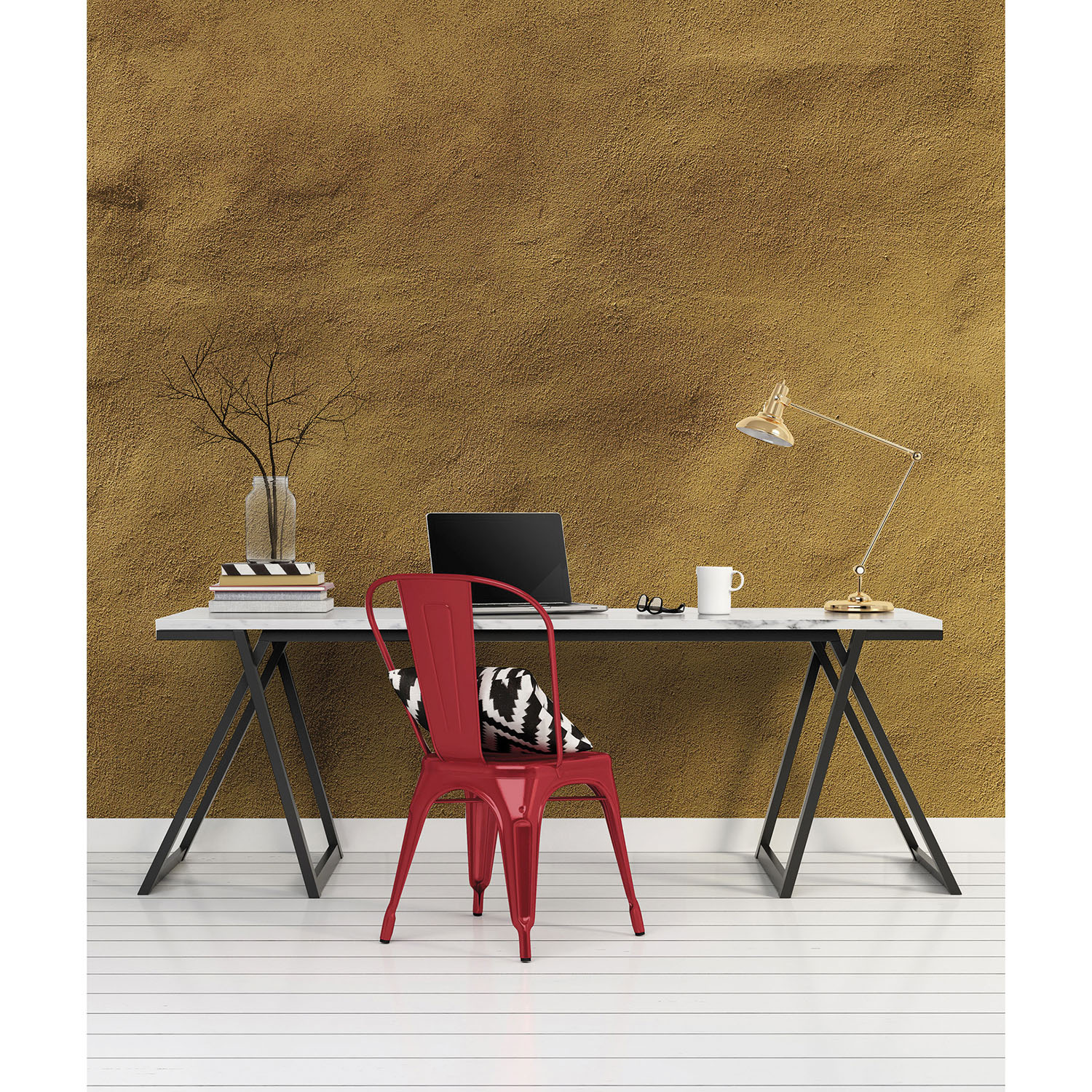Mur d’image imitation enduit à la chaux couleur curry safran ocre