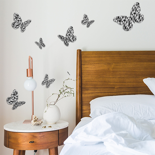 Sticker 3D Papillon scandinave noir et blanc – pack de 7 papillons