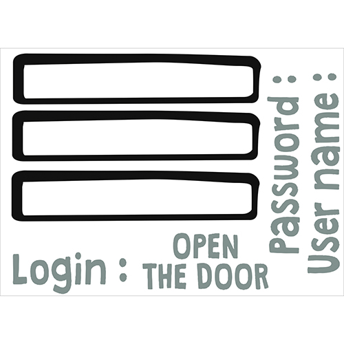 Cet ensemble de sticker "Open the door" imite à la perfection la page de connexion d'un site internet. Cet ensemble de sticker est parfait pour décorer une chambre d'ado, une chambre de geek informaticien ou de fan de réseaux sociaux ! Cet ensemble de sticker peut être disposé sur un mur mais aussi sur un porte comme un sésame pour obtenir l'accès à une pièce ! Vous souhaitez décorer le moindre recoin de votre intérieur ? Votre déco est trop sombre et terne à votre goût ? Ne doutez plus de vos talents de décorateurs d'intérieur et faites confiance à Wall Sweet Home ! La planche de 7 stickers OPEN THE DOOR vous permet de créer une atmosphère unique et tendance grâce à une personnalisation poussée de votre décoration. Nos produits s'adaptent en fonction de la pièce où vous souhaitez poser le sticker afin de vous laisser libre choix et ressortir votre créativité ! Le sticker Open the door est fait pour vous ! Ne perdez plus une seule seconde ! Vous souhaitez mettre un peu d'humour sur vos placards pour rappeler que leur accès est réservé à ceux qui ont le code : alors on y va ! Cela peut être aussi un bon moyen de découvrir le code pour comprendre vos ados... ou pas ! Découvrez aussi dans le même esprit le sticker Ieat Ipod !