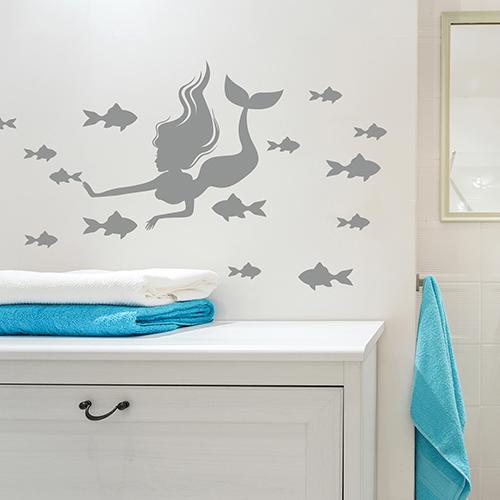 La salle de bain est aussi un lieu où l'on peut rêver et s'inventer des histoire. Plongez dans une univers surnaturel avec notre ensemble de sticker sirène et poissons et faites des rêves fabuleux. Pourquoi ne pas choisir un sticker de qualité ? Pourquoi ne pas offrir à votre salle de bain une seconde vie ? N'attendez plus un seul instant ! Les experts de chez Wall Sweet Home vous proposent une sélection de stickers autocollants de la gamme Sirene Poisson pour la décoration de votre salle de bain. Une pièce tendance, moderne et unique grâce à ce produit de qualité. Faites voyager votre famille dès l'entrée dans le coeur de cette pièce. Alors vous hésitez encore ? N'ayez pas peur et optez pour la qualité à petit prix. Il n'est plus question d'attendre pour le sticker déco adhésif de la gamme Sirene Poisson de chez Wall Sweet Home !