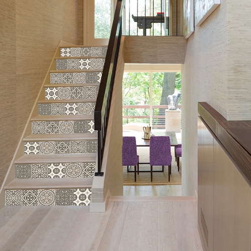 Contremarches adhésives Carreaux de Ciment gris (Pack de 3)