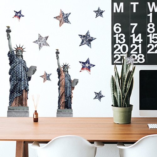 Vous souhaitez voyager aux Etats-Unis, et plus précisément à New-York, tout en restant dans votre chambre ou dans votre salon ? C’est possible dès maintenant grâce à nos stickers de référence représentant la Statue de la Liberté ! Grâce à ces stickers, vous pourrez découvrir la statue mythique habillée aux couleurs patriotiques des Etats-Unis pour lui donner un look jeune et branché ! Dans ce pack, vous trouverez plusieurs stickers de la Statue de la liberté ainsi que plusieurs stickers étoiles assortis. Vous pourrez décorer à merveille une chambre ou un salon pour une déco jeune et urbaine ! Ce produit est entièrement fabriqué en France et est d’une très grande qualité. De plus, l’avantage principal que vous aurez en commandant notre produit est non négligeable ! En effet, ce pack de stickers muraux ne laisse aucune trace si vous décidez de le changer de place à pose ! Alors faites-vous plaisir et décorez votre intérieur à votre goût sans être lassé !