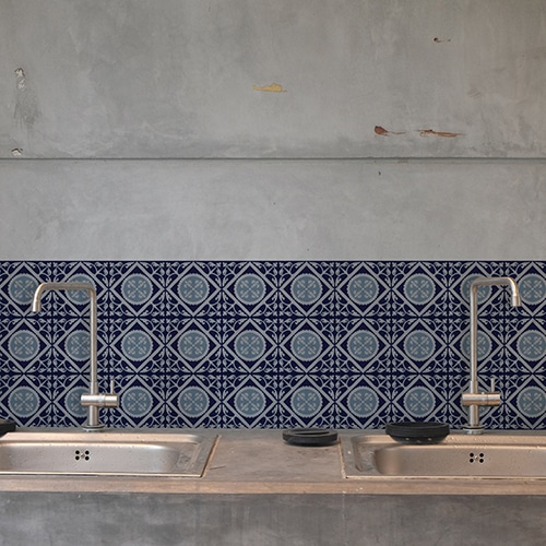 Stickers pour carrelage effet carreaux de ciment gris bleu