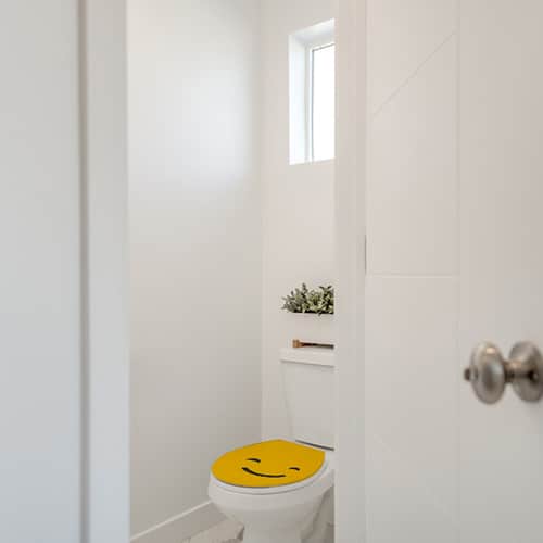 Vous ignorez comment décorer vos WC et vous recherchez des produits de qualité ? Alors optez pour notre sticker pour abattant de WC : Smiley Sourire Jaune, dès maintenant et uniquement chez Wall Sweet Home ! Ce sticker autocollant pour abattant de WC représente un smiley jaune souriant. Grâce à ce sticker adhésif, vous pourrez redécorer vos WC en un clin d’oeil ! Génial n’est-ce pas ? En effet, ce sticker autocollant apportera de la couleur et un style humoristique à vos WC ou à votre salle de bain très facilement ! De plus, son design et sa qualité graphique exceptionnelle impressionneront vos invités à tous les coups ! Alors, n’hésitez plus et sautez le pas dès aujourd’hui ! Nos stickers sont très faciles à poser et à retirer, et ils ne laisseront aucune trace sur vos surfaces. Dingue n’est-ce pas ? Les produits que nous vous proposons sont d’une qualité sans égal. De plus, nous vous les proposons à petits prix ! Alors, franchissez le pas !